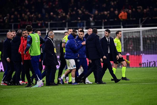 比赛结束之后,国米的众将依然对裁判的这一决定感到非常不满,并围上前去讨要说法。就连国米管理人员,也情绪激动,十分愤怒地找裁判理论。